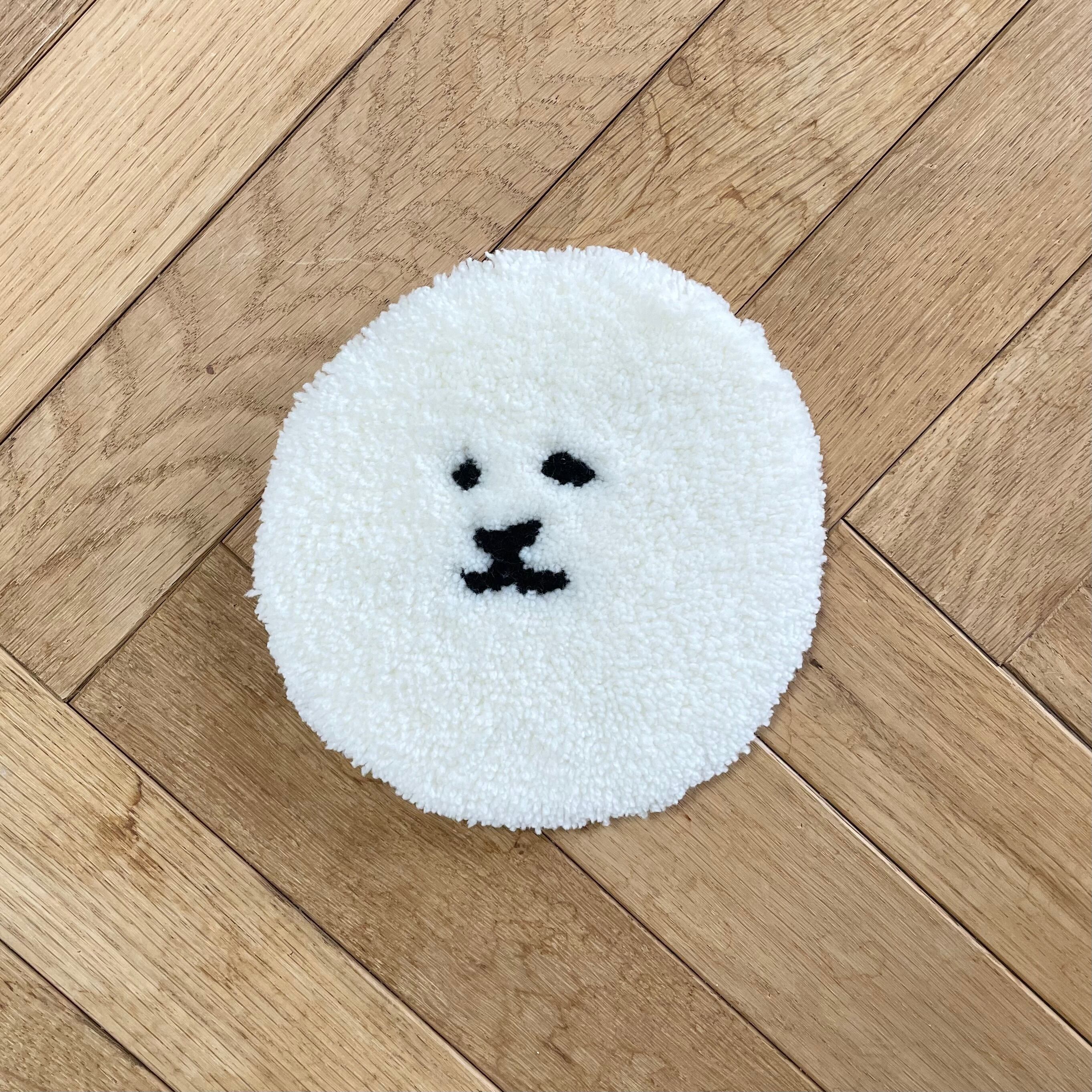 にっこりモフモフのビションフリーゼをモチーフにした両手サイズのラグです。